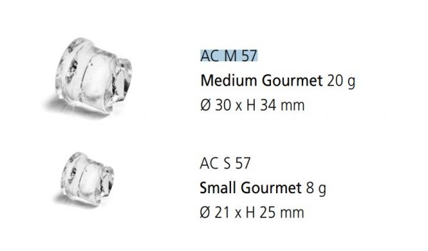Loại đá | Small Gourmet – 8 g, Ø 21 × H 25 mm Medium Gourmet – 20 g, Ø 30 × H 34 mm |