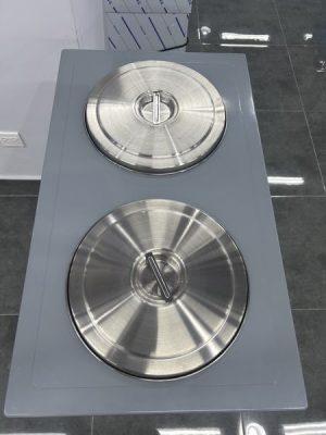 Toàn thân tủ được làm từ thép không gỉ 430 cao cấp, có khả năng chống ăn mòn, chịu lực tốt và dễ vệ sinh. Chất liệu này không chỉ đảm bảo độ bền cho sản phẩm mà còn giúp duy trì an toàn vệ sinh thực phẩm – yếu tố quan trọng trong môi trường nhà hàng.